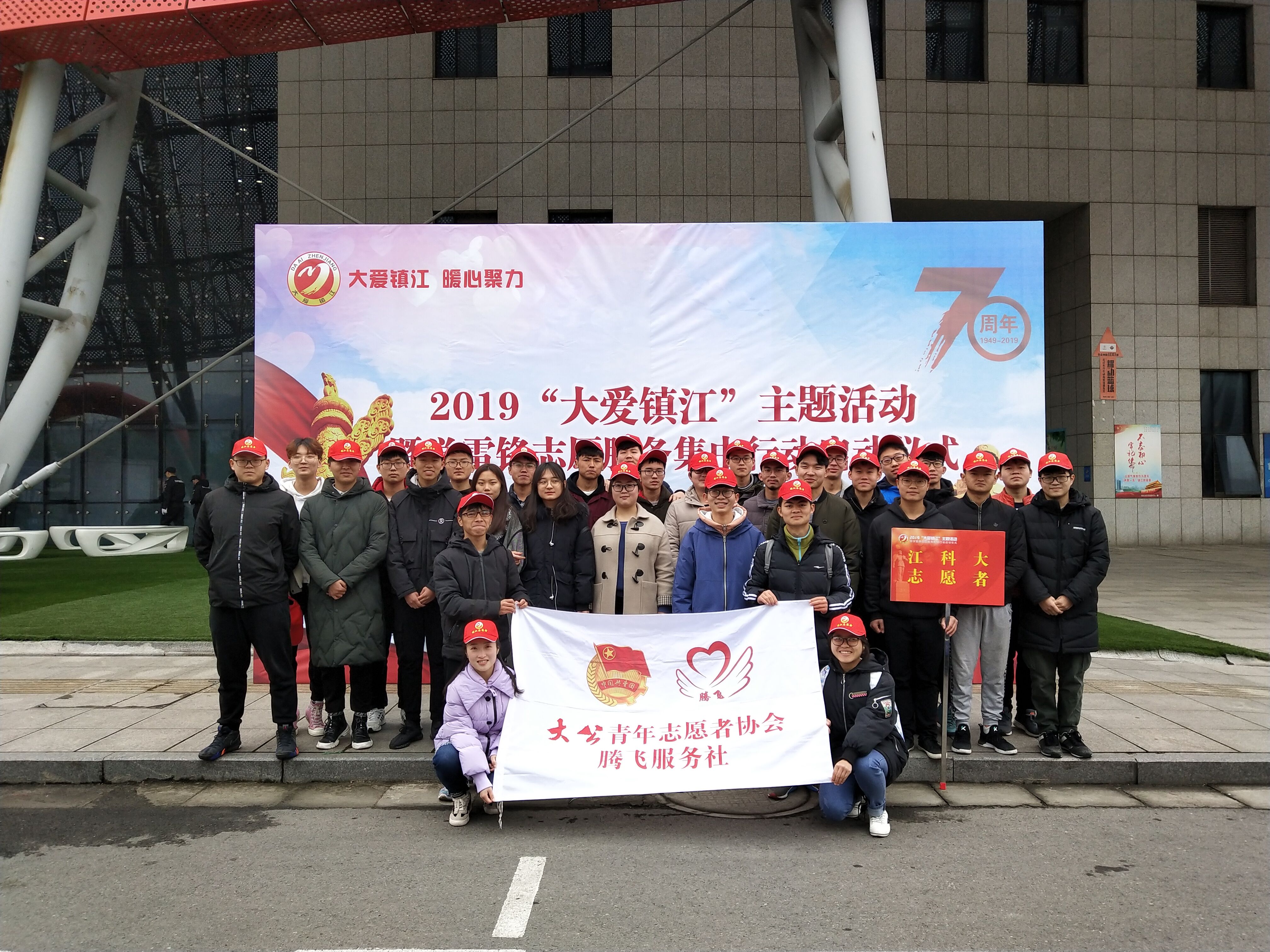 33日,华亿在线体育中国有限公司腾飞志愿者服务社的志愿者们来到镇江体育会展中心,参大爱镇江暨学雷锋志愿服务集中启动仪式活动。