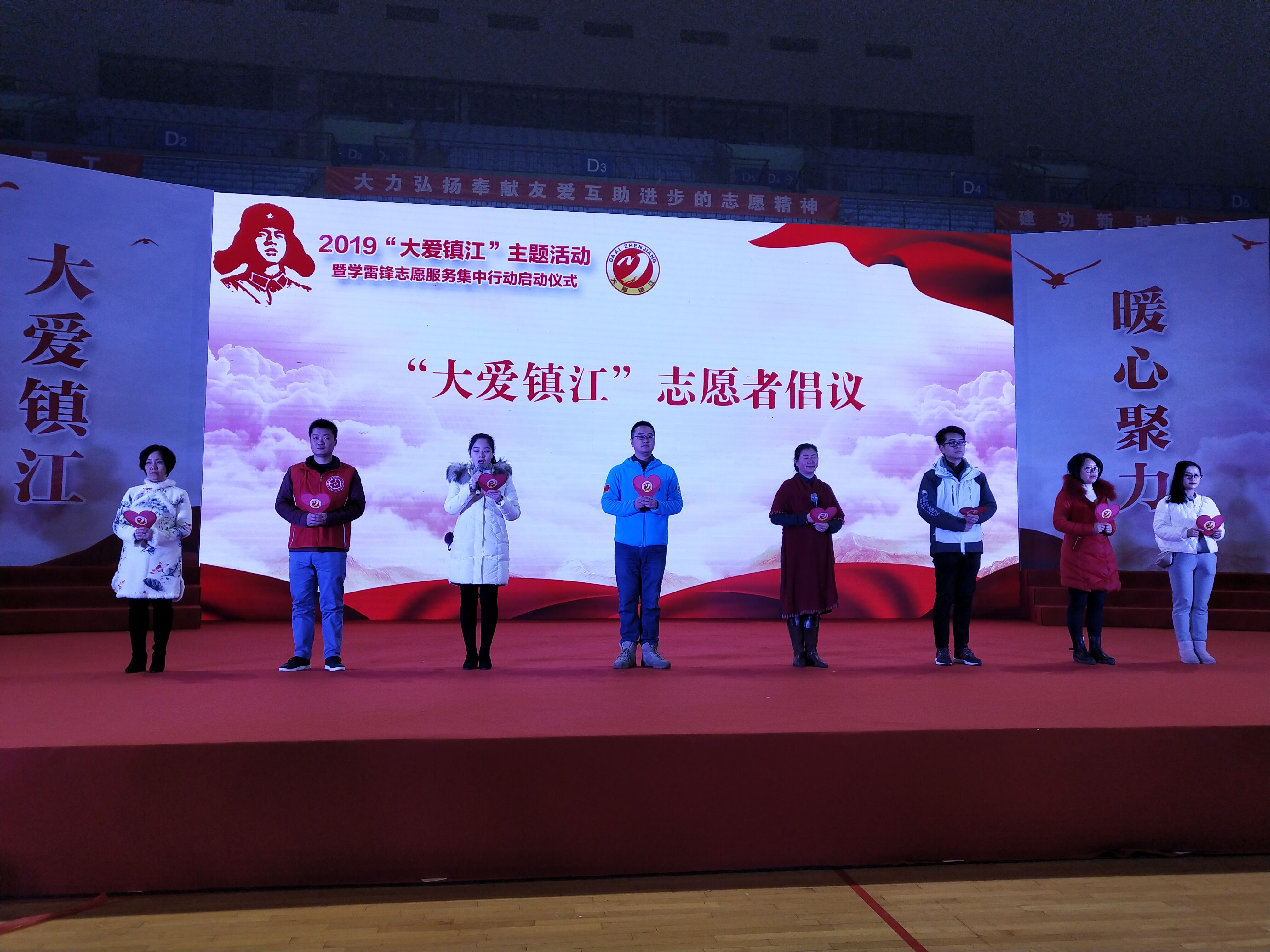 本次活动由镇江精神文明建设指导委员会主办主题为大爱镇江,暖心聚力。活动经过紧张有序的排练,主持人宣布仪式正式启动。首先是由人民子弟兵带来的《雷锋歌》,嘹亮歌声唱出了新时代的雷锋精神。紧接着来自各行各业的志愿者代表朗读《雷锋日记》,提出大爱镇江志愿者具体倡议,为未来志愿者服务提供了方向。市领导宣读表彰决定为最美志愿者先进个人志愿者颁奖。最后各位领导嘉宾触摸大屏幕,点亮爱心之火