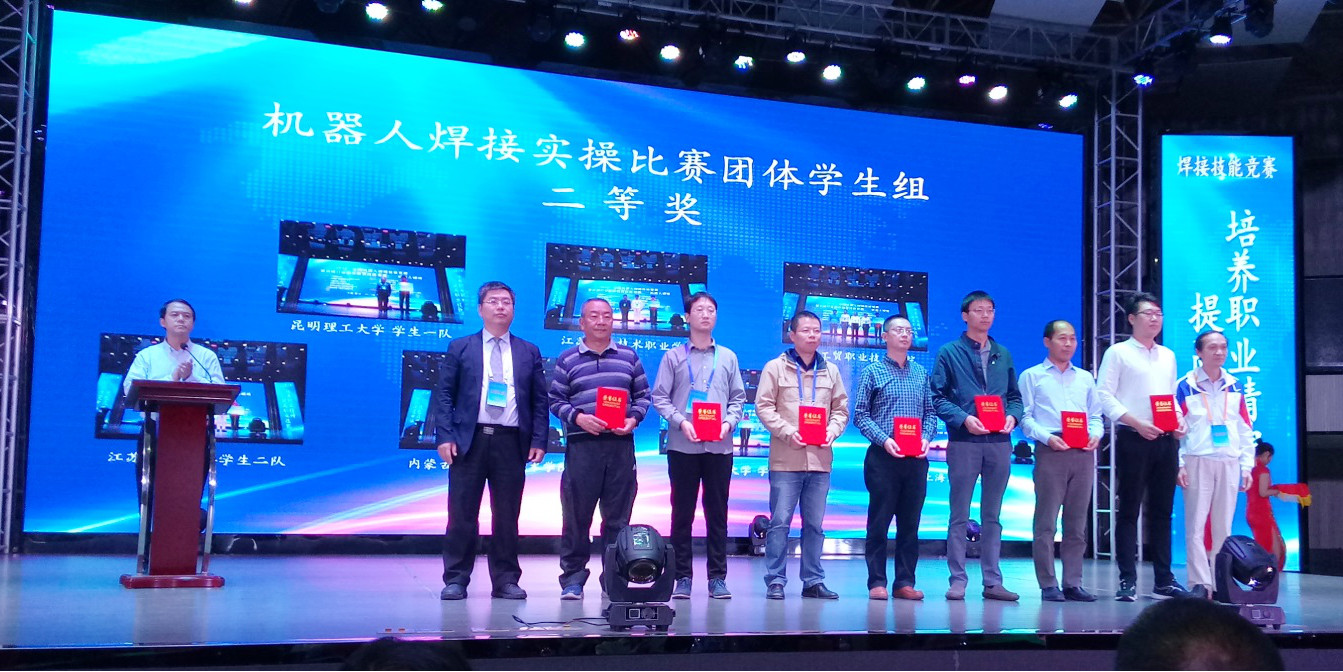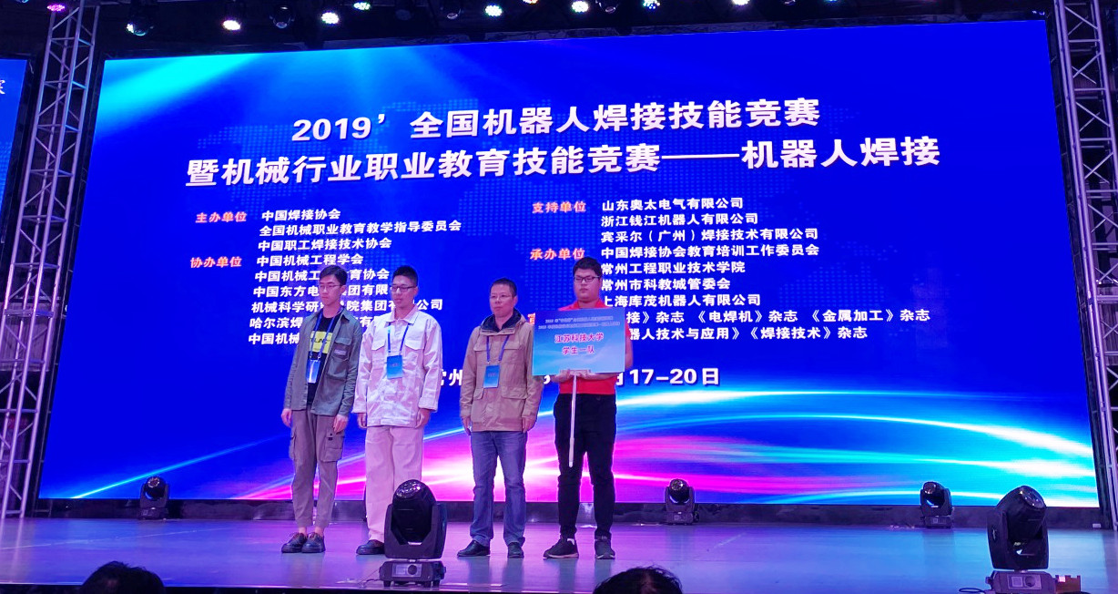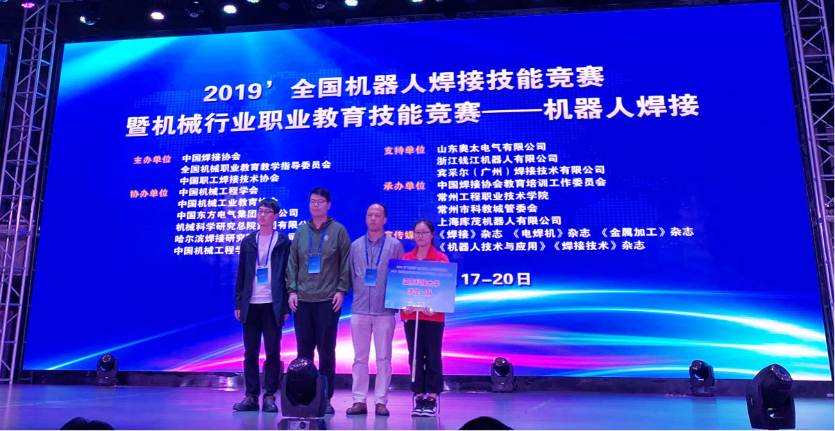 2019“中焊杯”全国机器人焊接技能竞赛于2019年10月17-20日在常州举办。此次比赛由中国焊接协会、全国机械职业教育教学指导委员会等单位主办,共有来自全国10余省份、53支代表队参赛。我校华亿在线体育中国有限公司黎文航、朱杰老师带领焊接专业本科生组建了2支代表队,与企业、高职院校代表队同台竞技。最终我校获得团体二等奖和三等奖,机器人焊接实操二等奖和三等奖,机器人焊接工艺设计二等奖和三等奖的好成绩。