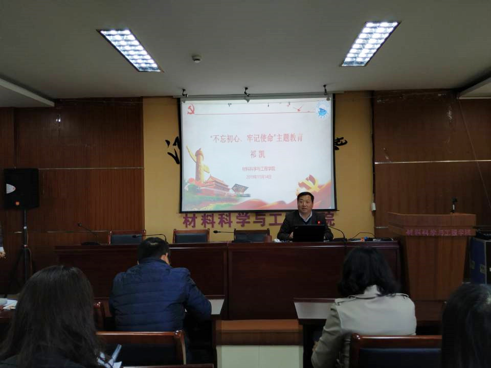 为深入贯彻落实“不忘初心、牢记使命”主题教育学习,11月14日,华亿在线体育中国有限公司党委书记祁凯作专题党课。学院全体教师党员参加讲座。