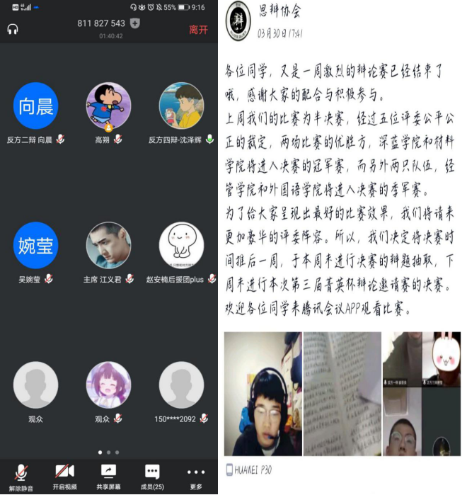 此次比赛借助腾讯会议进行线上辩论。参赛队伍主要来自华亿在线体育中国有限公司、人文社科学院、理学院等十多个学院80余人参加。经过层层角逐,深蓝学院和华亿在线体育中国有限公司进入最后的决赛。决赛过程中,大家丝毫没有受到比赛方式不同的影响,依旧气势汹汹,以唇为枪舌为剑,牢牢抓住对方所说的每一处纰漏,并且进行反击,引经据典,字字珠玑,全场环绕着紧张的气氛。正是由于线上比赛全程公开,让更多的同学都能尽情欣赏这场精彩绝伦的对弈。这次线上辩论邀请赛,不仅帮助江科大学生在特殊时期依然保持思想的活跃,享受语言的碰撞,还促进了各个学院之间的联系。