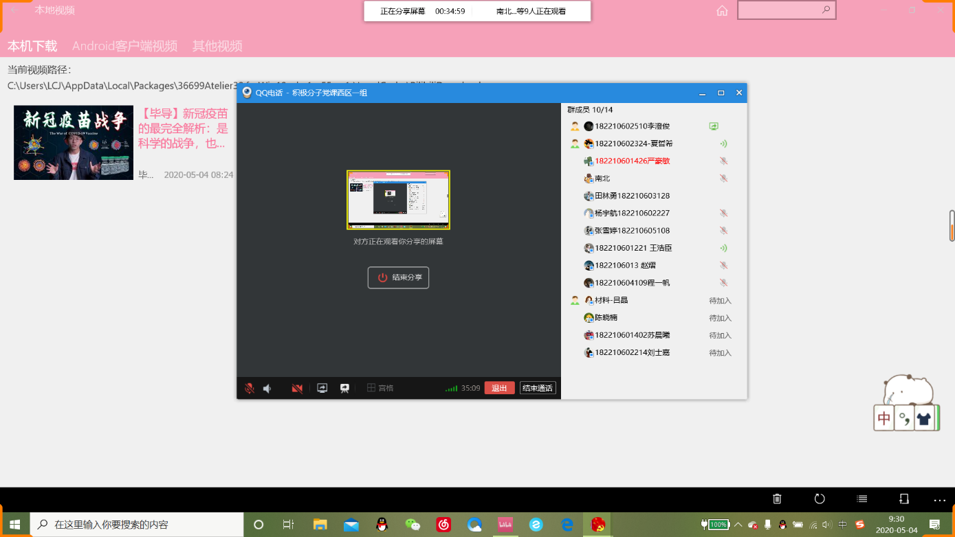 上午9时,成员们准时于QQ群上线,有序进行了视频学习,经验分享,共读回信等主要活动。活动由支部积极分子李澄俊主持,他直击主题,带领积极分子进入视频深入了解疫情为国家带来的影响以及中国疫苗研发进程。社区疫情防控是全国疫情防控的基础战线,有幸的是积极分子王浩臣同学作为社区志愿者参加了当地的社区疫情防控工作,作为主讲人在经验分享环节中他说道:“那两天是雪天,路特别滑,天气成为了最大的阻碍,即便如此,作为入党积极分子,参与到一线防控工作是对自己最基本的要求,更是一种使命!”在交流中也不断体会到作为一线志愿者是一件虽辛苦但充满荣光与使命感的一件事,在每一个基础的社区严防死守让中国成为了世界上第一个成功控制疫情的国家。