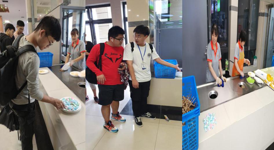 此次活动中,权益部同学积极动员各班生活委员,引导他们在班级内发起光盘行动,倡导同学们一起厉行节俭、反对浪费。14日中午,团学组织成员在一层二层的餐具回收处摆放了各种口味的薄荷糖,作为践行光盘行动的奖励。与此同时,他们还对送还餐具的同学宣讲厉行节约的相关知识:“《中国城市餐饮食物浪费报告》显示,我国城市餐饮业仅餐桌食物浪费量就有1700万至1800万吨,相当于3000万至5000万人一年的食物量。其中,校园食物浪费问题相当严重。约占食物供应量的1/3。”遇到浪费食物的同学,权益部工作人员会对其进行劝导,鼓励他们在购买饭菜时适当增减,争取做到“心知肚明”、“量力而行”。