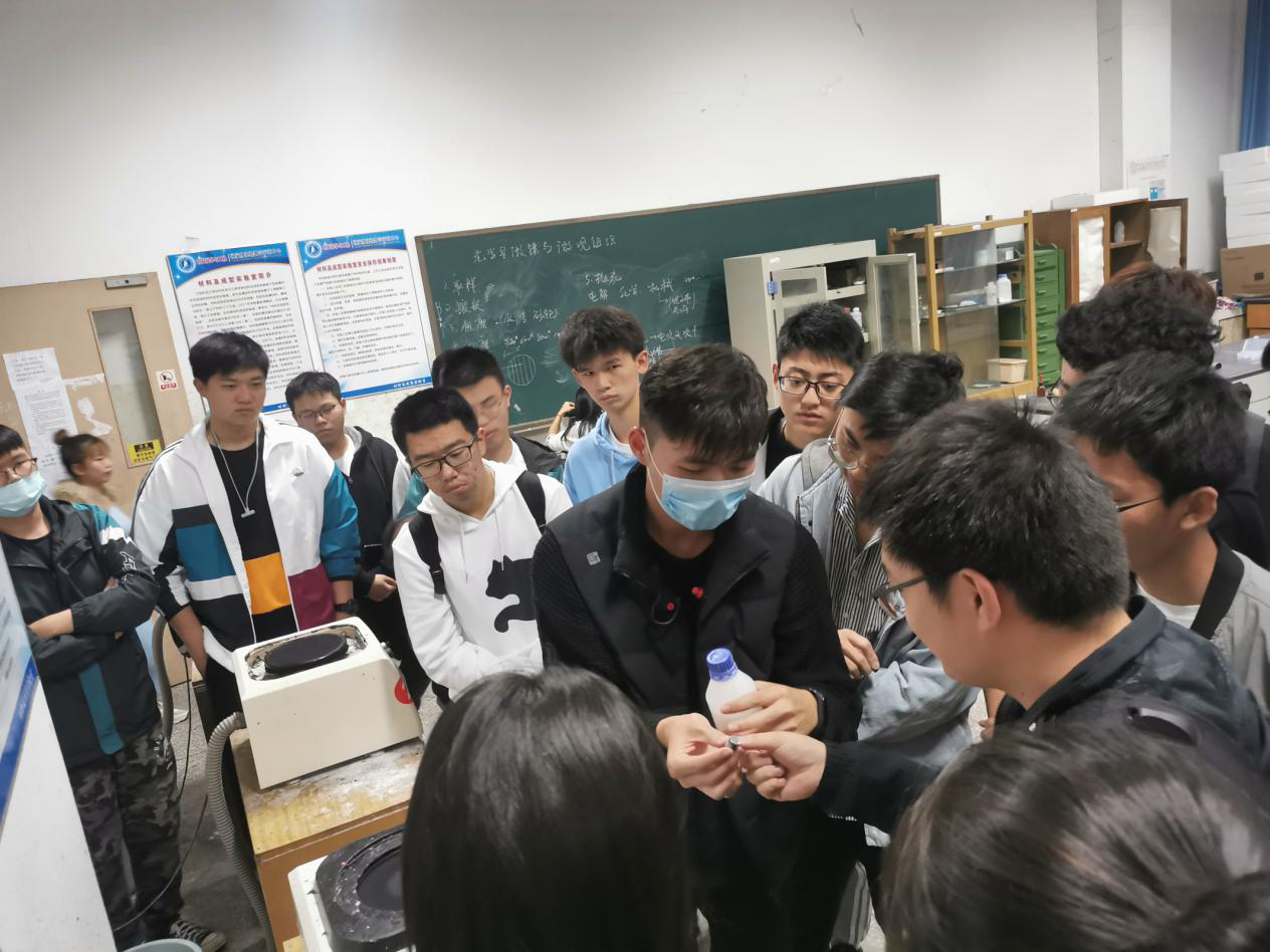 金相磨制分为打磨、抛光、腐蚀和观察四个步骤。了解相关流程以后,同学们开始动手打磨。在场的工作人员协助并指导同学们,指出存在的问题,给出解决办法,同时认真确保同学们的安全。在抛光时尤其要注意手腕用力以及试样表面温度,避免金相溅飞出去。李世平同学为大家指导试样抛光,确保大家安全规范的操作。抛光结束后就是金相试样的腐蚀。金相腐蚀主要是:酒精清洗-水清洗-3%硝酸腐蚀这几个步骤。在李世平同学的指导下同学们很快的完成了腐蚀操作。最后就是激动人心的显微镜下观察制备好的金相。同学们依次在显微镜下观察到了金相的相貌,领略金相的魅力。