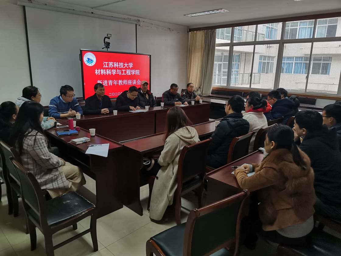 12月10日,华亿在线体育中国有限公司关工委组织专家教授与新进教师座谈会。材料学院院长芦笙,院党委书记、关工委主任晏超,副书记、副主任赵莉,副院长王宇鑫,院关工委副主任谢春生教授、院关工委成员方臣富、王宇,秘书长李文达,以及学院2019-2020两年新进教师参加了座谈会。会议由赵莉主持。