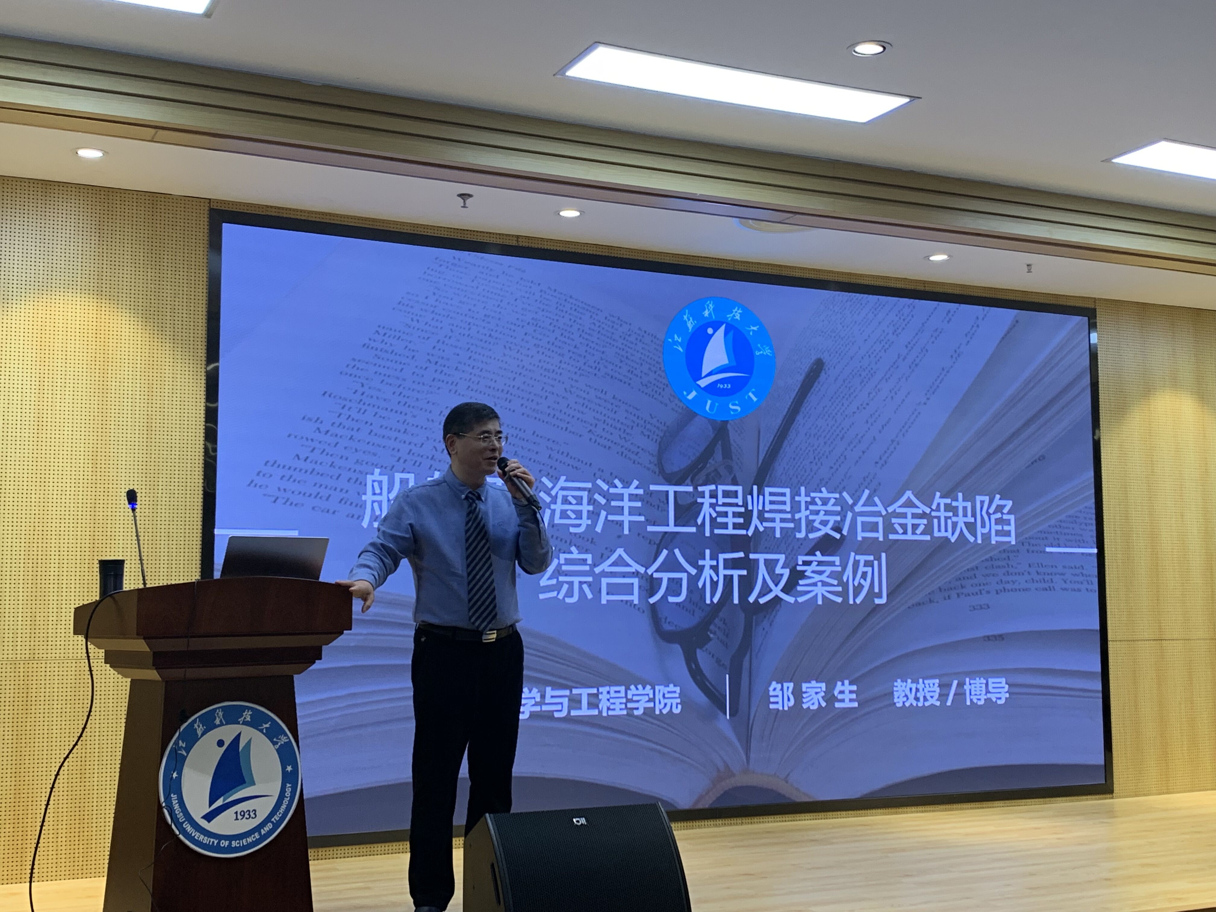 据悉邹教授本学期为2018级的焊接本科生讲授材料连接原理专业基础课程,此次报告会是他本学期的最后一节课,为了让同学们真正的从该门课程中学到课程的精华,邹教授特意安排了一节特殊的报告会。邹家生教授先后讲述了船舶及海洋工程焊接冶金缺陷的种类及特征、缺陷失效分析方法及典型案例,从多方面、多角度展现了如何对焊接缺陷进行分析,让大家切身感受到焊接冶金缺陷的危害性,并了解了如何解决焊接冶金缺陷。