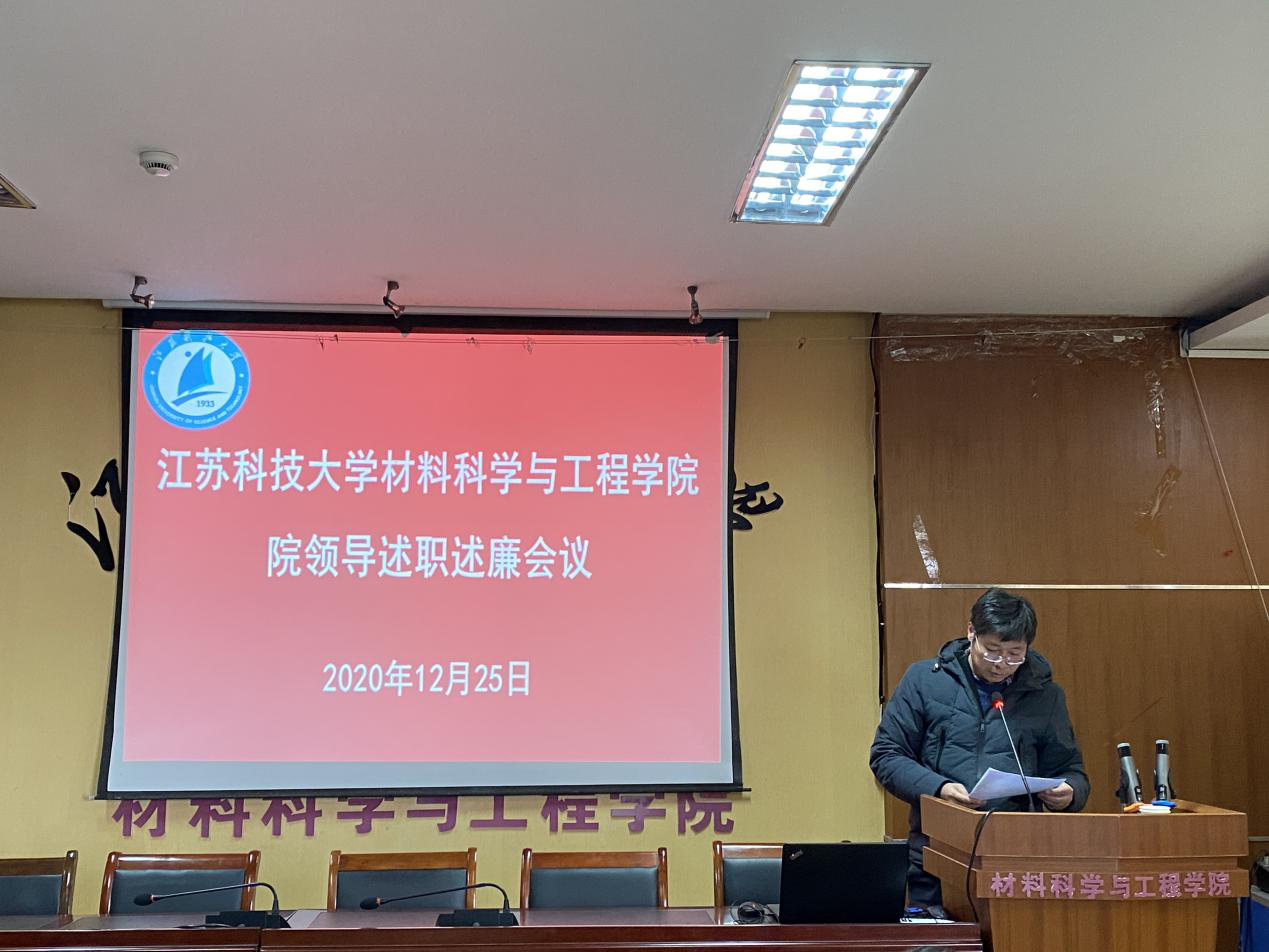 根据《江苏科技大学处级领导干部年度考核工作办法》(江科大〔2020〕90 号)文件精神,12月25日下午,华亿在线体育中国有限公司召开2020年度领导班子成员述职述廉大会。学院全体教职工参加会议。会议由学院党委书记晏超主持。