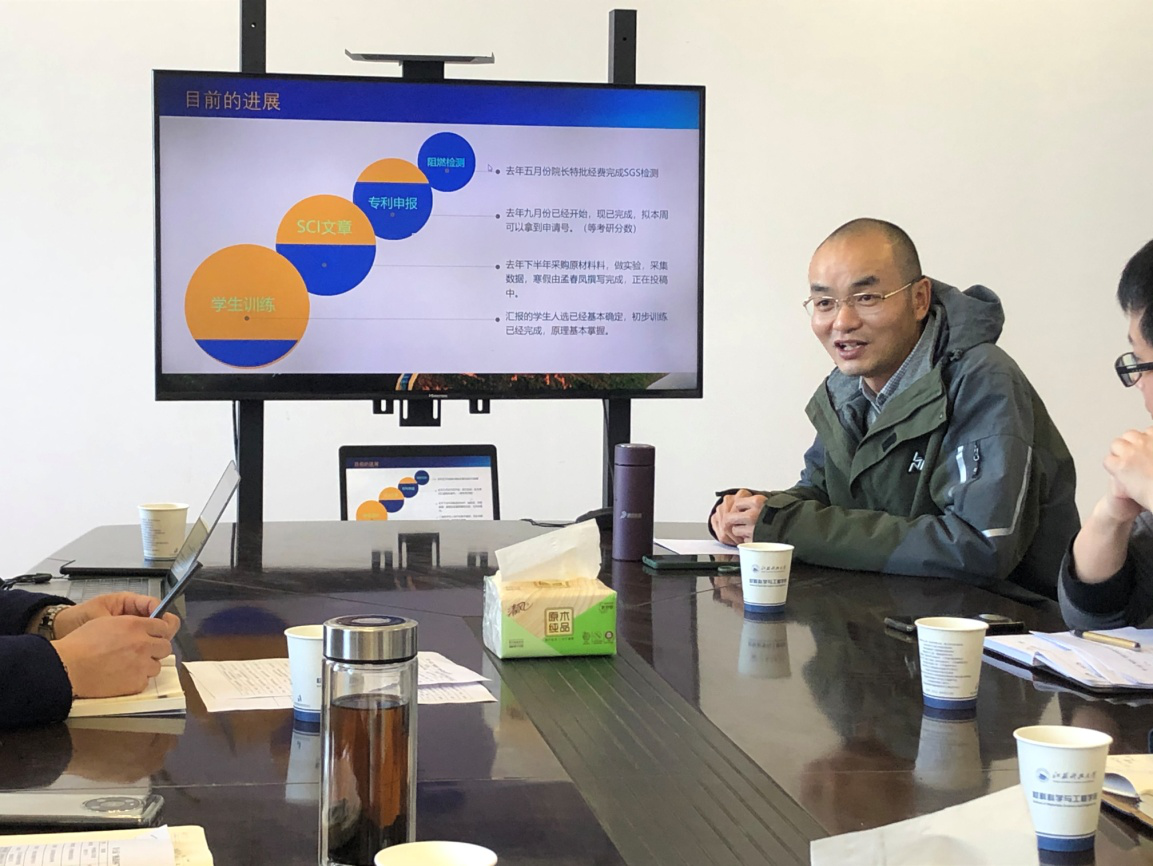 “尽管前路障碍重重,但是相信,只要我们不懈的努力,终会横渡沧海,到达胜利的彼岸。”3月2日下午,江苏科技大学党委常委、副校长汤建,校团委书记薛泉祥,校团委副书记徐剑、张冬冬来到华亿在线体育中国有限公司,调研、听取2021年挑战杯竞赛项目进展情况,华亿在线体育中国有限公司院长芦笙,副院长王宇鑫,党委副书记赵莉,团委书记李文达,项目指导教师汤继俊、刘彬、冯迪出席会议。会议由薛泉祥主持。