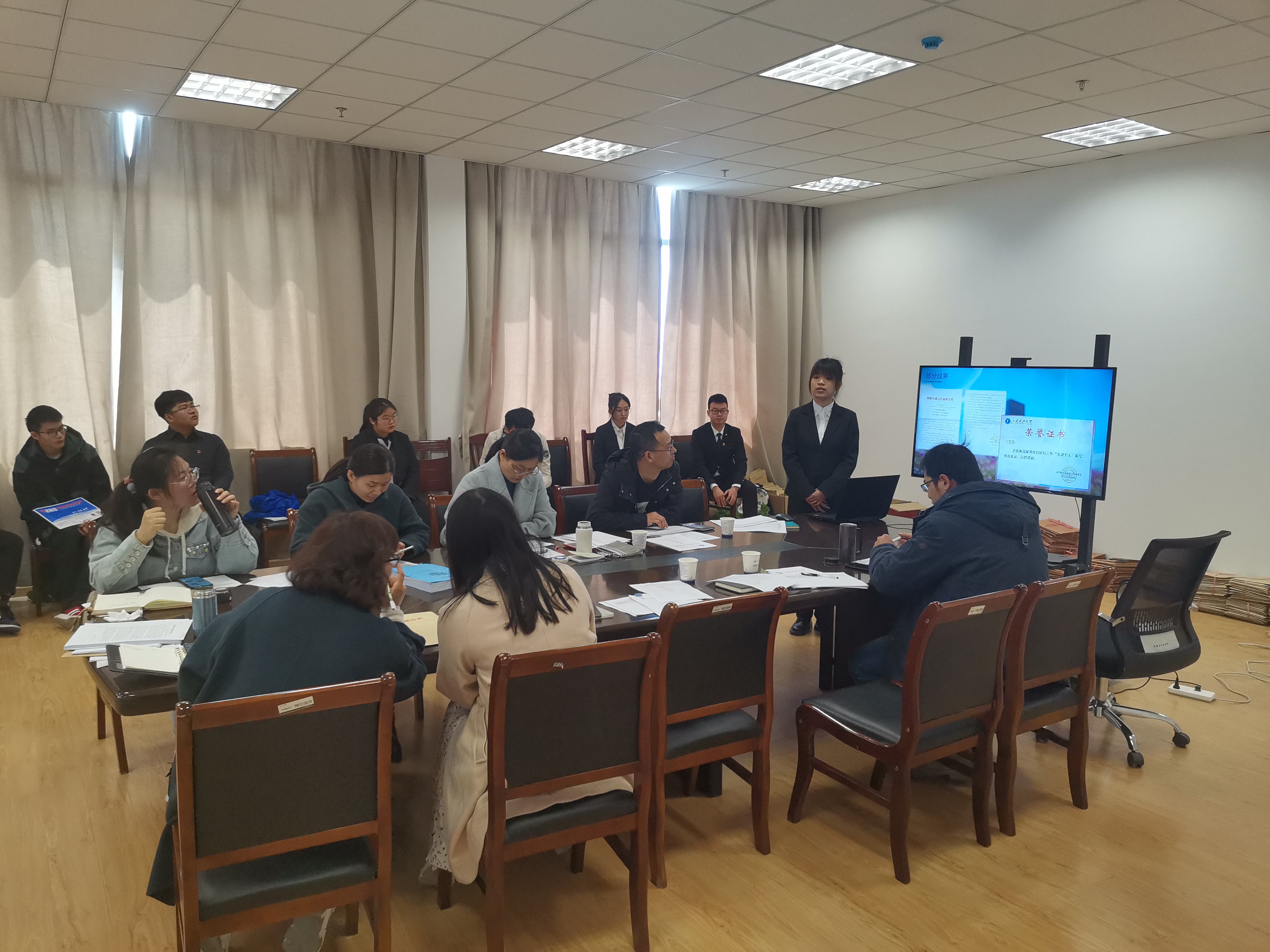 本次现场评选采用PPT展示、现场点评、提问和答辩的方式考核参评者的综合素质,同时结合申报材料和临场表现,以评委老师投票打分的形式拟定院级推荐名单。评选会现场,各候选人和班级代表从思想、学习、工作和展望等方面展示了个人(集体)的特点、优势,每一张奖状和照片的背后都蕴含着刻苦努力的付出与坚持不懈的追求。