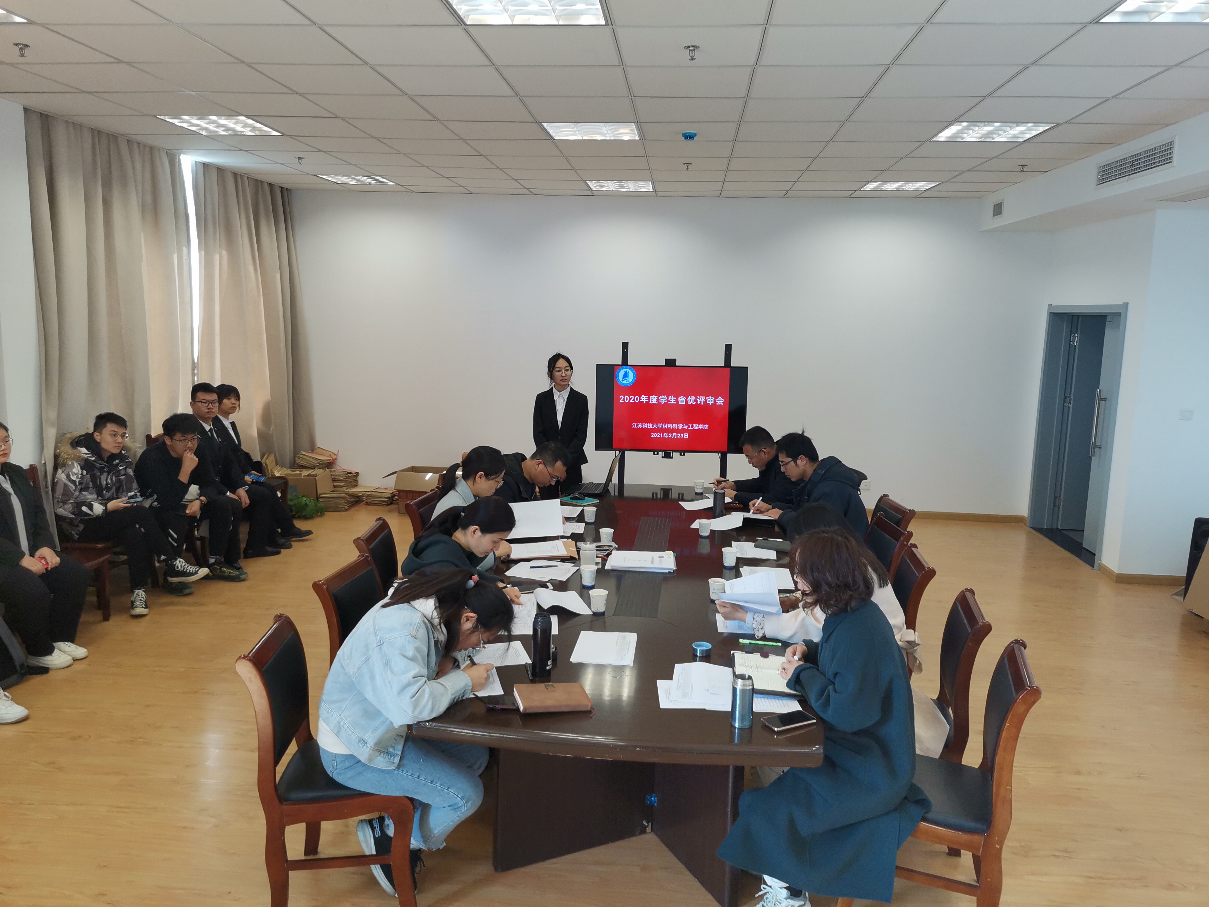 根据相关文件的指示精神,3月23日,华亿在线体育中国有限公司在文理大楼1645召开2020年度省级三好学生、优秀学生干部、先进班集体和大学生年度人物评选会,院党委副书记赵莉、功能材料系副主任袁妍妍、金属材料系教师牛牧野、全体辅导员,以及所有参加竞评的学生和班级代表参加会议。