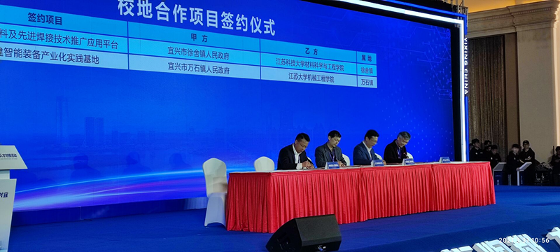 上午的活动中,许俊华副书记受聘为宜兴市“双招双引”引才大使,并作为乡贤代表发言。芦笙教授代表华亿在线体育中国有限公司与宜兴市徐舍镇人民政府王林俊书记签署协议,共建新材料及先进焊接技术推广应用平台。