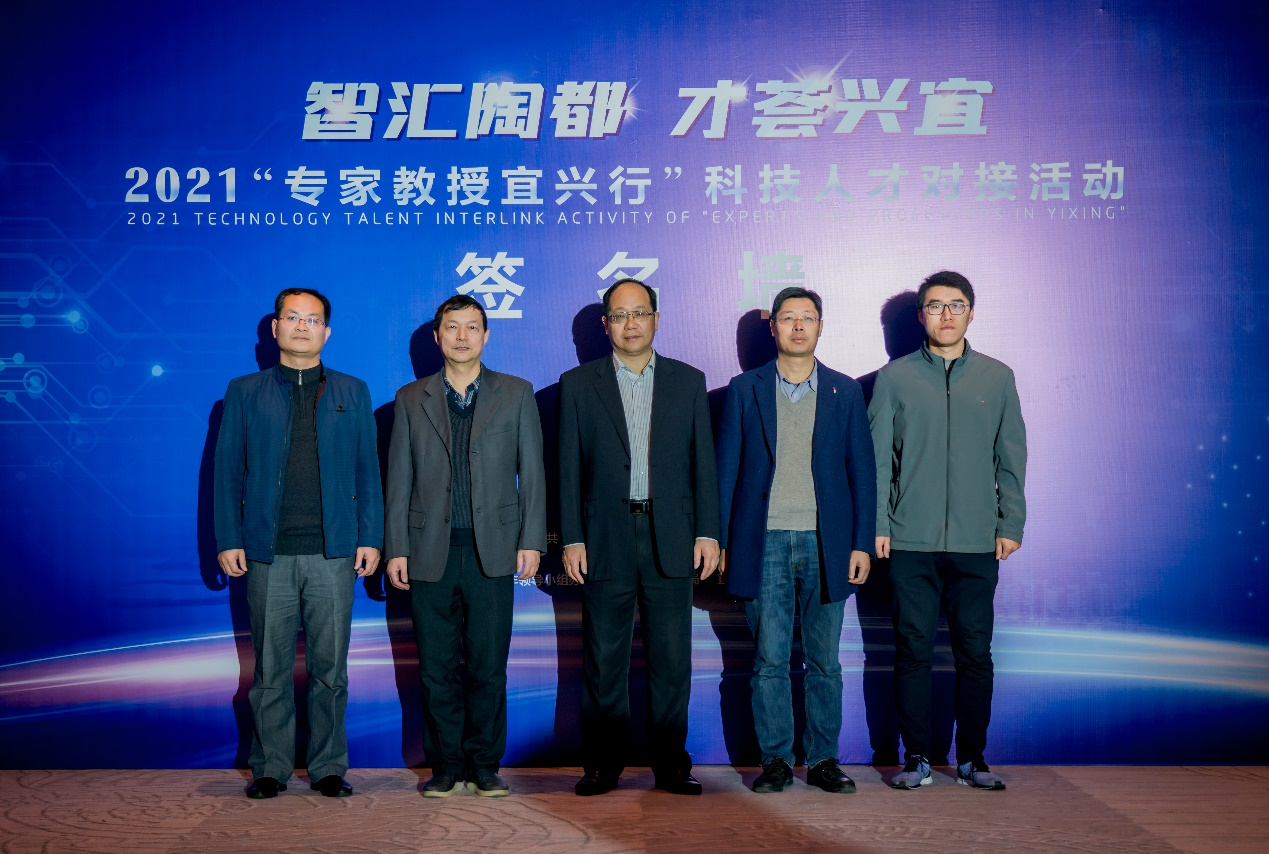 3月31日,为全面贯彻落实宜兴太湖湾科创带建设暨“双招双引”工作会议精神,深化政产学研合作,加快优质科创资源集聚,宜兴市政府举办了“智汇陶都才荟兴宜”2021“专家教授宜兴行”科技人才对接活动。我校党委副书记许俊华教授率队,华亿在线体育中国有限公司院长芦笙教授、陈书锦教授、邵勇副教授以及科技镇长团成员石凤健副教授一行受邀参加活动。