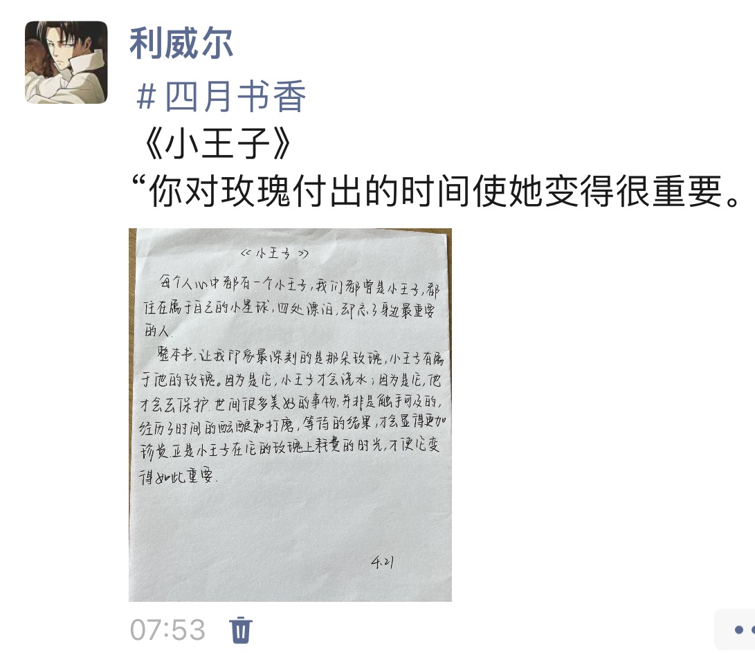 活动共分为两个阶段,采用线上线下相结合的形式,吸引了来自机械学院、自动化学院、经济管理学院等16个学院的200余名学生参加。4月20日至22日,参与活动的学生通过个人社交平台推荐喜欢的书籍,分享读后感想,摘录令人触动的语句,共收到书籍分享截图300余份。4月23日,世界读书日当天,读者们通过PPT讲解、视频以及朗诵等多种形式展示了一本本传世佳作,其中,《哑舍》里一个个不起眼的老物件,蕴藏着取舍、野心、亲情等贴近生活的情节,让人不自觉代入其中,感受不同的人生经历和哲理;《追风筝的人》讲述两个处于不同阶层、性格截然不同的人的故事,让我们看到了作者对于人性黑暗的揭露批判和对于真善美的追求。最后,每位学生以读书日为主题为自己设计并制作一个专属书签,大家将自己喜欢的文案或者名句写在书签上,用彩笔勾勒图画,以流苏装饰,文学与色彩相融合,经过一番努力,一个个与众不同的书签纷纷出炉。