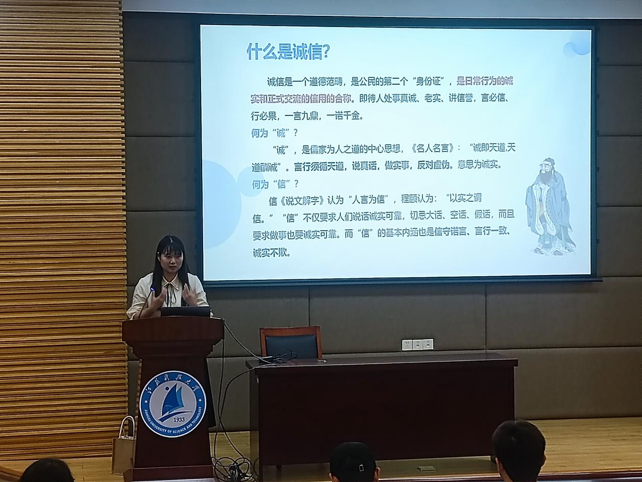 人无信不立,业无信不兴。诚信是中华民族的优秀美德,是每位学生的启蒙必修课。为增强学生诚实守信意识、金融风险意识以及感恩意识,进一步落实立德树人,引导学生珍惜个人信誉,健康成长成才,蒲公英义工站于2023年6月5日晚举办“内诚于心,外信于人”资助诚信教育主题讲座,蒲公英义工站指导老师刘甜甜主讲。